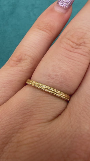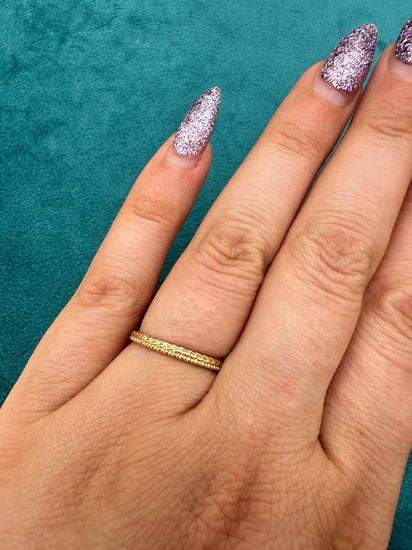 Whether you pair it with an engagement ring, stack it with others, or wear it solo, the texture adds a softness that makes it feel personal and alive.