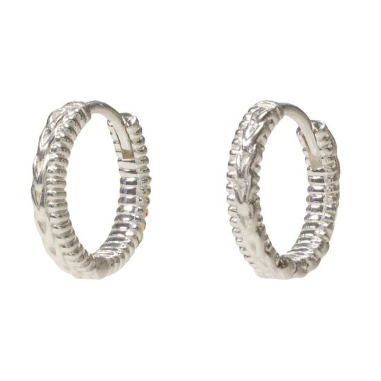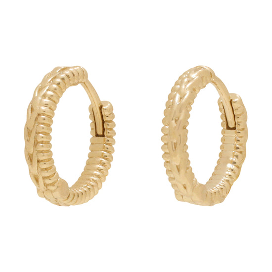 The Kakra Single Stitch Mini Huggies feature the classic Twyla Dill single crochet stitch, modeled from hand crocheted lace and scaled down to the perfect everyday size. They’re ideal for first, second, or third piercings—and look just as good solo as they do layered.