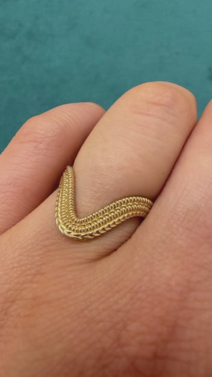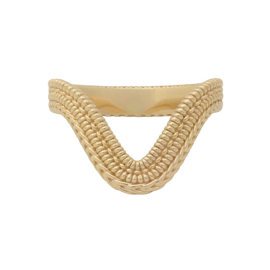Modeled from two rows of my hand crocheted lace, it forms a deep V with a soft curve—creating a shape that’s strong, elegant, and full of presence. It makes a stunning statement worn alone, and stacks beautifully with solitaire rings to create a striking, custom-feeling set.