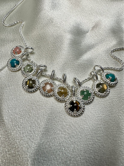 - Gemstones: Tiger Eye, Turquoise, Labradorite, Golden Rutilated Quartz, Pink Opal, Peach Moonstone, Prehnite